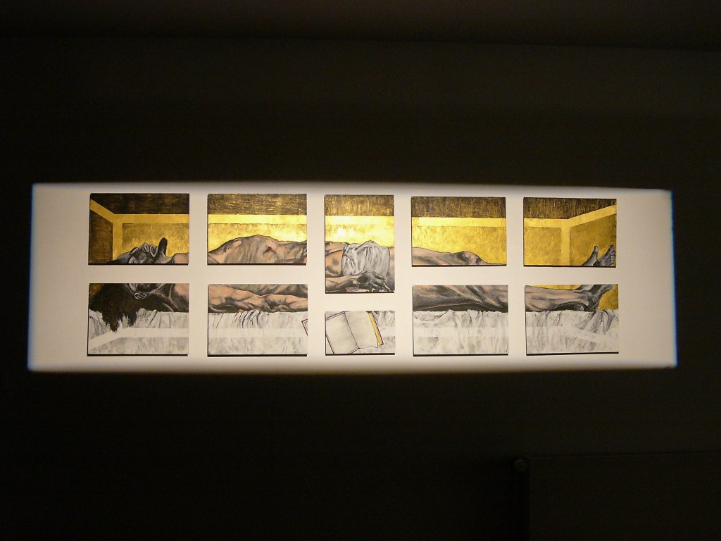 déploie comme une histoire, avec une action se déroulant dans le temps, et ne la fige pas dans un lieu, dans un temps passé (chaque oeuvre ayant été créés dans le passé). Ainsi je suis face à une histoire, avec des personnages (5 protagonistes)1 qui sont mes maîtres et qui sont moi à la fois. Ces maîtres, je les tuerais, comme chacun doit tuer ses pères pour faire acte de naissance, l’exposition en sera la trace et le témoin.
