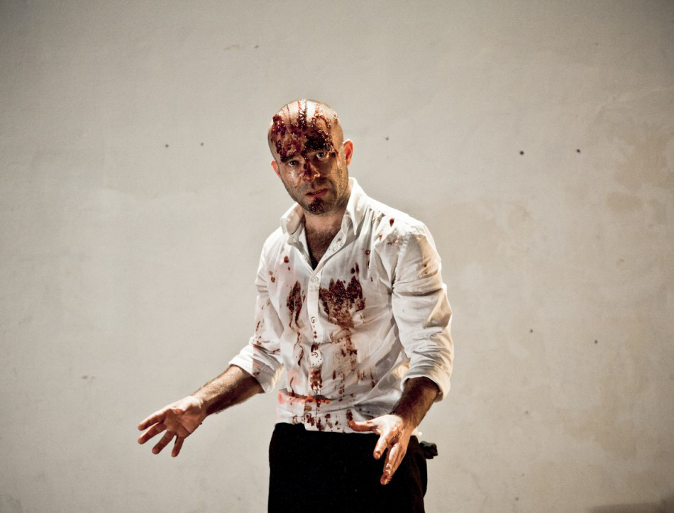 Trois d’entre elles sont jouées ici en un seul acte par trois comédiens au jeu bi-frontal, dans un espace scénique nu et restreint, où tombera une lumière blanche et crue assez expressionniste.