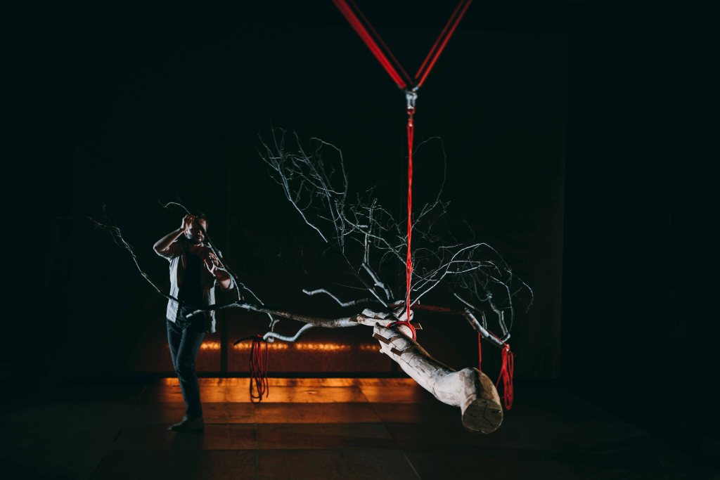 L’Expérience de l’arbre est un projet conçu à la Villa Kujoyama au Japon où Simon Gauchet a résidé à l’automne 2018. En 2008, Simon Gauchet a rencontré Tatsushige Udaka, un jeune comédien de théâtre Nô, qui lui a transmis des bribes de cet art ancestral. Ce spectacle plastique, où l’image compte autant que les mots, s’inscrit dans un contexte écologique anxiogène. Et il soutient, avec panache, que si l’arbre plie, rompt parfois, il repousse toujours. Comme le théâtre. Et comme l’imaginaire.