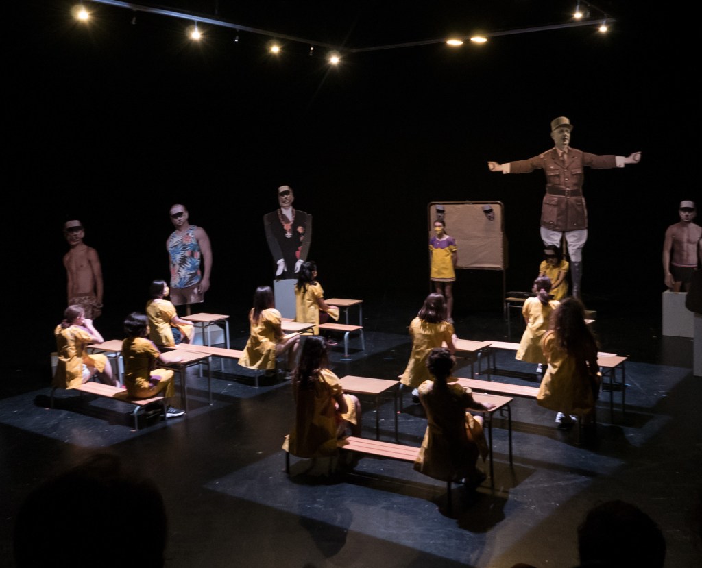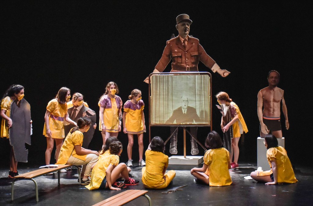 Céline Champinot, accompagnée de certaines artistes de son groupe LA GALERIE, travaille avec un groupe de jeunes filles du lycée Charles de Gaulle, à Dijon, sur Charles de Gaulle, comme Président universel, figure héroïque et surtout patriarcale. Elle les a invitées à écrire à Papy Charles pour lui demander de nous libérer. De la peur, de l’urgence, de la surveillance, de choses intimes et politiques. Ces lettres, drôles et touchantes, croiseront d’autres écrits proposés par les lycéennes, poèmes, chansons, ou parodies de dissertations qui se demandent si Grand-Père Charles est un bon juge en matière d’art. Toutes ensemble elles construisent un spectacle qui finalement tourne autour de la question de savoir si l’Art est libératoire. Quand « Martine fait du théâtre » rencontre l’art brut de Henry Darger et ses Vivian Girls, petites filles hermaphrodites, qui tenues en esclavage décident de se révolter.