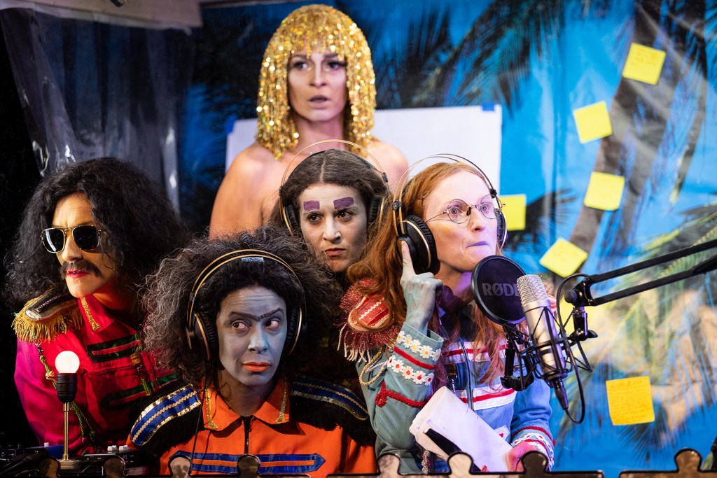 Les Apôtres aux Coeurs Brisés – cavern club band est le troisième volet de notre trilogie Biblico-Pop. L’action se passe dans une caverne, cave, studio d’enregistrement, abri anti-atomique, tombeau, enfer, terrier pour enfants perdus ou lapins blancs…. Le jour anniversaire de la mort du leader de leur groupe – un certain Jésus-, les Apôtres aux Coeurs Brisés – boys-band d’artistes polyvalents et pâle copie d’un groupe jadis célèbre – commémorent une dernière fois et s’interrogent : « Pourquoi nos coeurs sont-ils brisés ? »