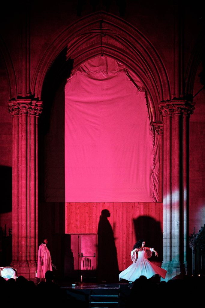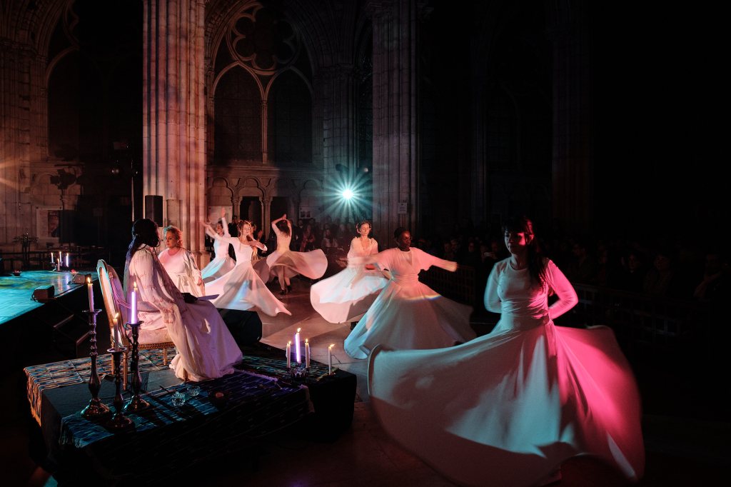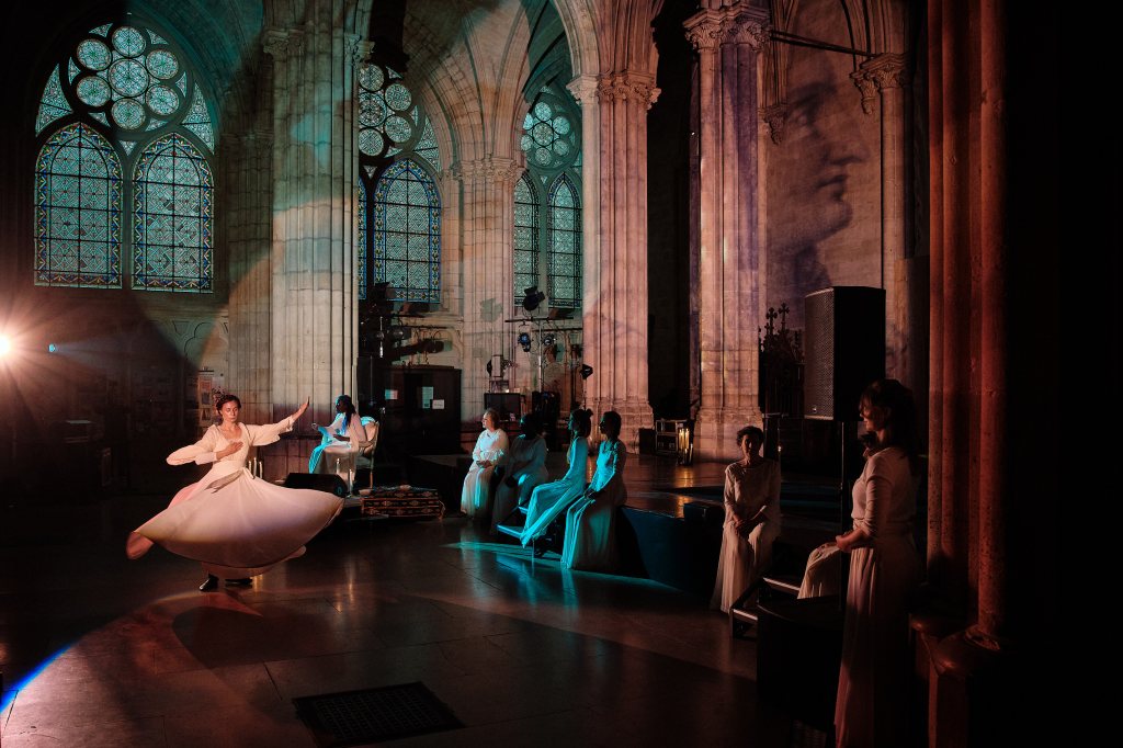 La ville de Saint-Denis est associée à l’histoire des rois de France. Beaucoup connaissent l’existence de la nécropole royale rassemblant des tombeaux du XIIè au XIXè siècle. 43 rois, 32 reines et 10 serviteurs de la monarchie y sont inhumés. Si quelques noms de rois comme Dagobert ou Louis XIV se rappellent à notre mémoire, les noms des reines et princesses sont parfois plus évanescents. Qui se souvient d’Arégonde, d’Anne de Bretagne ou de Marie d’Anjou ? La Nuit des Reines est une performance qui rend hommage aux reines et princesses inhumées à la Basilique tout en créant des passerelles entre hier et aujourd’hui, à travers la notion de transe.