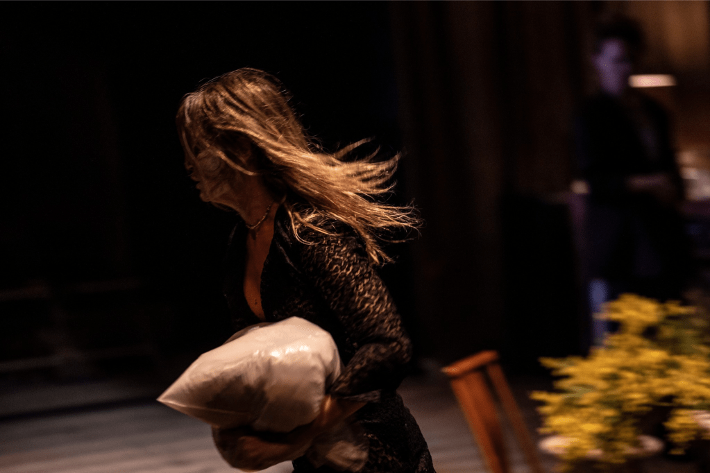 Ainsi, ils ont créé un spectacle immersif où le public suit l’intrigue non pas grâce à l’interprétation des mots, mais grâce à celle des gestes et des regards, tandis que les moindres détails deviennent d’une éloquence inhabituelle. Au sein d’un dispositif bifrontal, comme dans un long plan séquence avec une unité de lieu et de temps, le spectacle offre aux spectateurs et aux spectatrices la liberté d’opérer leur propre « montage ». Au plus près du plateau, des corps et des visages des interprètes, ils traquent dans les secrets des silences la richesse expressive de leurs paysages intérieurs.